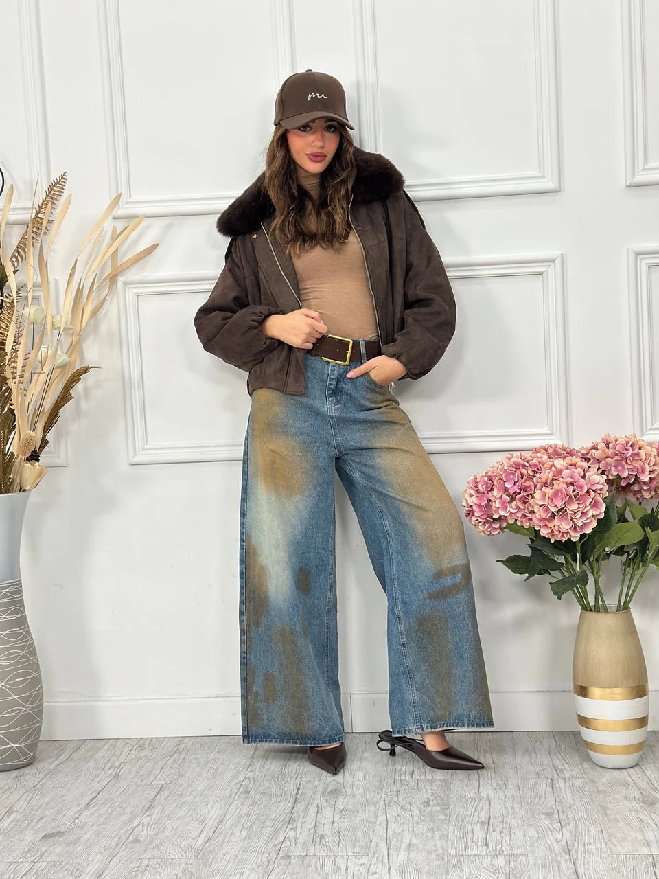 Chaqueta de ante con interior de piel y cuello desmontable